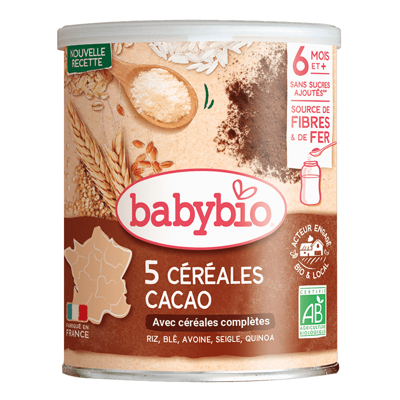 Votre enfant grandit et il est important de varier les plaisirs en lui proposant de nouvelles saveurs et de nouvelles consistances, Babybio céréales cacao permet d’aromatiser son lait.