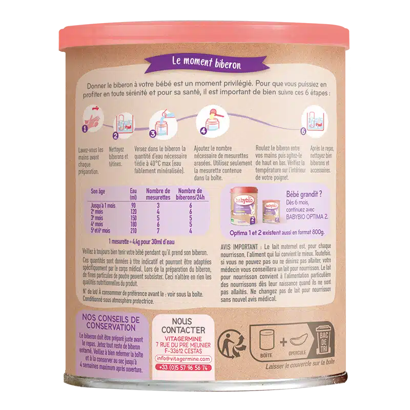 Comment utiliser Babybio Optima Lait de Croissance Bio 1er âge 400g ?