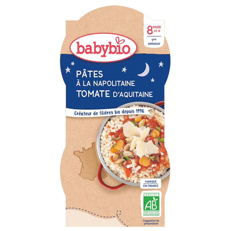 De plus, la recette mise sur des ingrédients de qualité. Notamment, les pâtes complètes apportent des fibres essentielles au transit, tandis que les tomates d’Aquitaine sont une source naturelle de lycopène. Par ailleurs, ce petit pot constitue un repas complet que vous pouvez servir seul ou accompagner selon l’appétit de votre enfant.