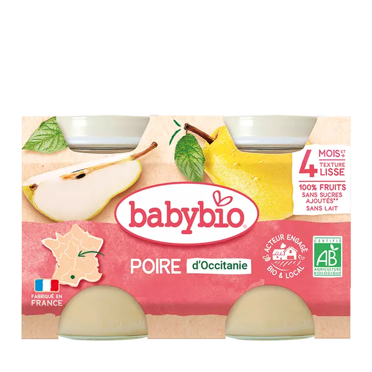 Dans ce petit pot poire de Provence, vous ne trouverez rien d’autre que la poire cultivée dans le respect de l’agriculture biologique. Babybio, depuis plus de 20 ans, sélectionne ses produits afin d’offrir le meilleur aux bébés et établit de solides relations avec les producteurs.