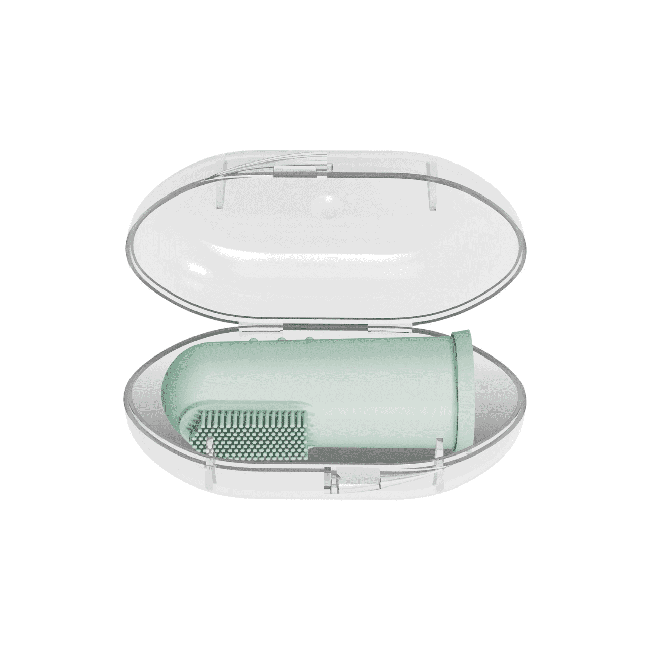 - 🛡️ Étui de protection fourni : Garde la brosse propre dans le sac à langer ou lors des voyages.
