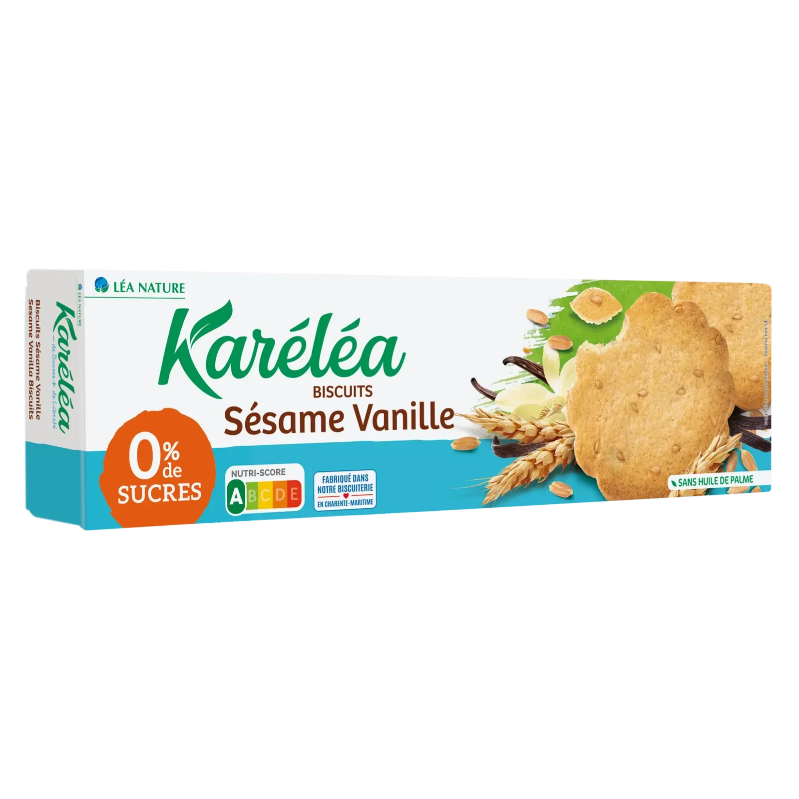 Pour une pause gourmande sans compromis, les Karéléa Biscuits sésame vanille sans sucres offrent une alternative saine et savoureuse. Ces biscuits bio affichent un Nutri-Score A et contiennent 0% de sucres ajoutés, grâce à l’édulcorant maltitol. Leur recette, élaborée en France, combine la douceur de la vanille au croquant des graines de sésame toastées pour un plaisir simple et maîtrisé.