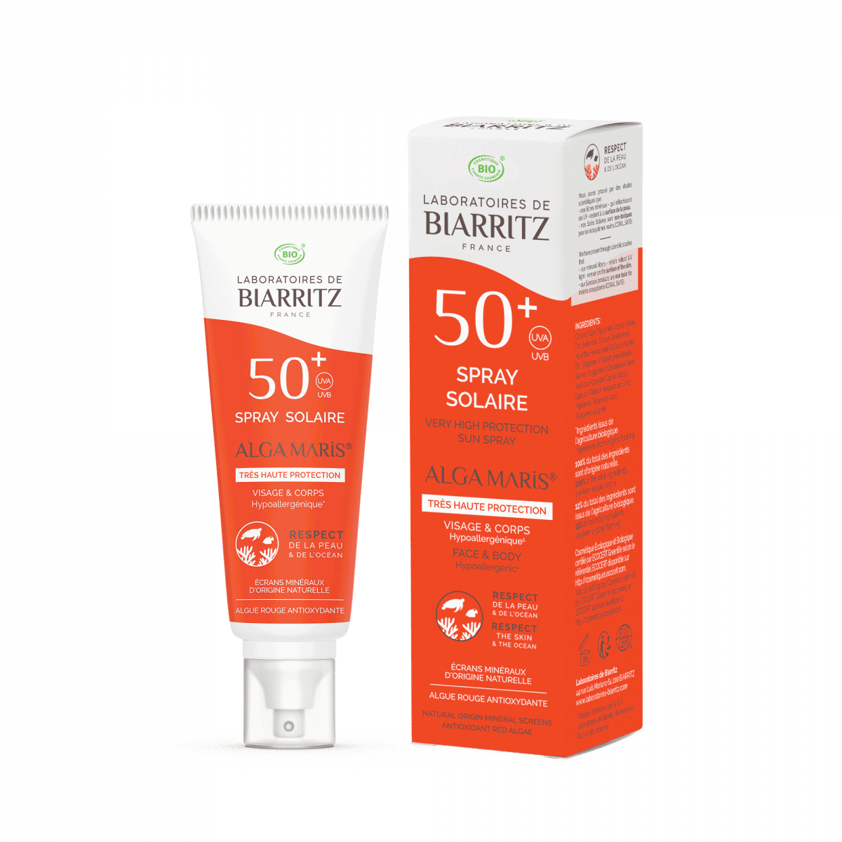 La formule est certifiée agriculture biologique par Ecocert Greenlife selon le standard Cosmos Organic. Elle repose sur des filtres minéraux non nano (dioxyde de titane) et une base d’ingrédients d’origine naturelle. L’absence de parfum, de parabènes, de silicones et de nanoparticules garantit une tolérance maximale pour les peaux les plus vulnérables. L’extrait d’Alga-Gorria®, issu de l’algue rouge *Gelidium sesquipedale*, renforce la protection cellulaire.