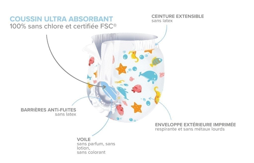 Par ailleurs, son format jetable et ses adhésifs repositionnables la rendent extrêmement pratique à utiliser. Vous la mettez et l’enlevez en quelques secondes. Enfin, son engagement écologique avec la certification FSC répond aux attentes de nombreux parents soucieux de réduire leur impact.