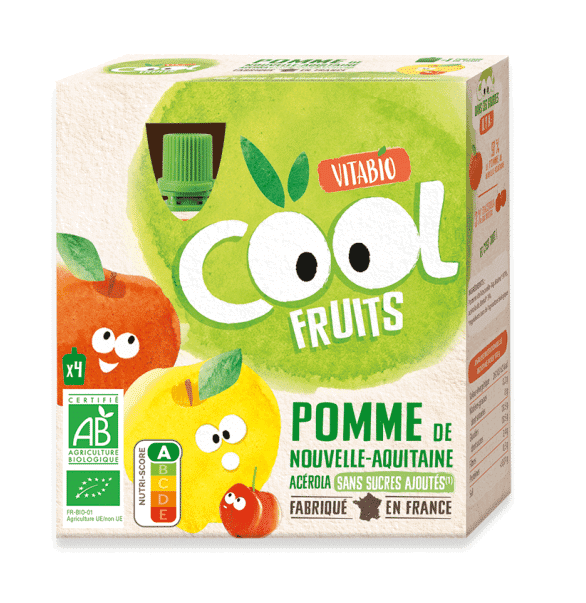 Le lot de 4 gourdes Vitabio Cool Fruits Pomme de Nouvelle-Aquitaine est disponible sur <a href="https://www.ma, livraison rapide au Maroc.