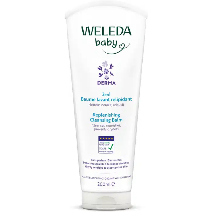 Pour la peau délicate des tout-petits, le Baume Lavant Relipidant 3en1 Weleda Baby Derma à la Mauve blanche Bio 200ml nettoie, hydrate et protège en un geste unique, sans parfum pour respecter les épidermes les plus sensibles.