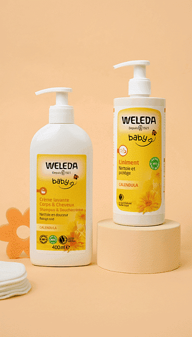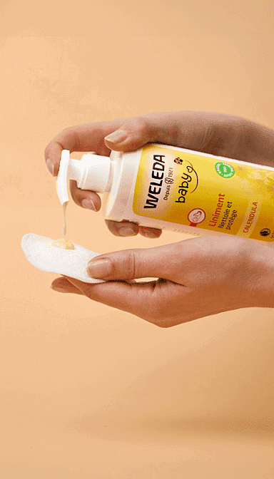 Le Weleda Liniment Bio nettoie et protège la peau sensible de bébé à chaque change 🌿